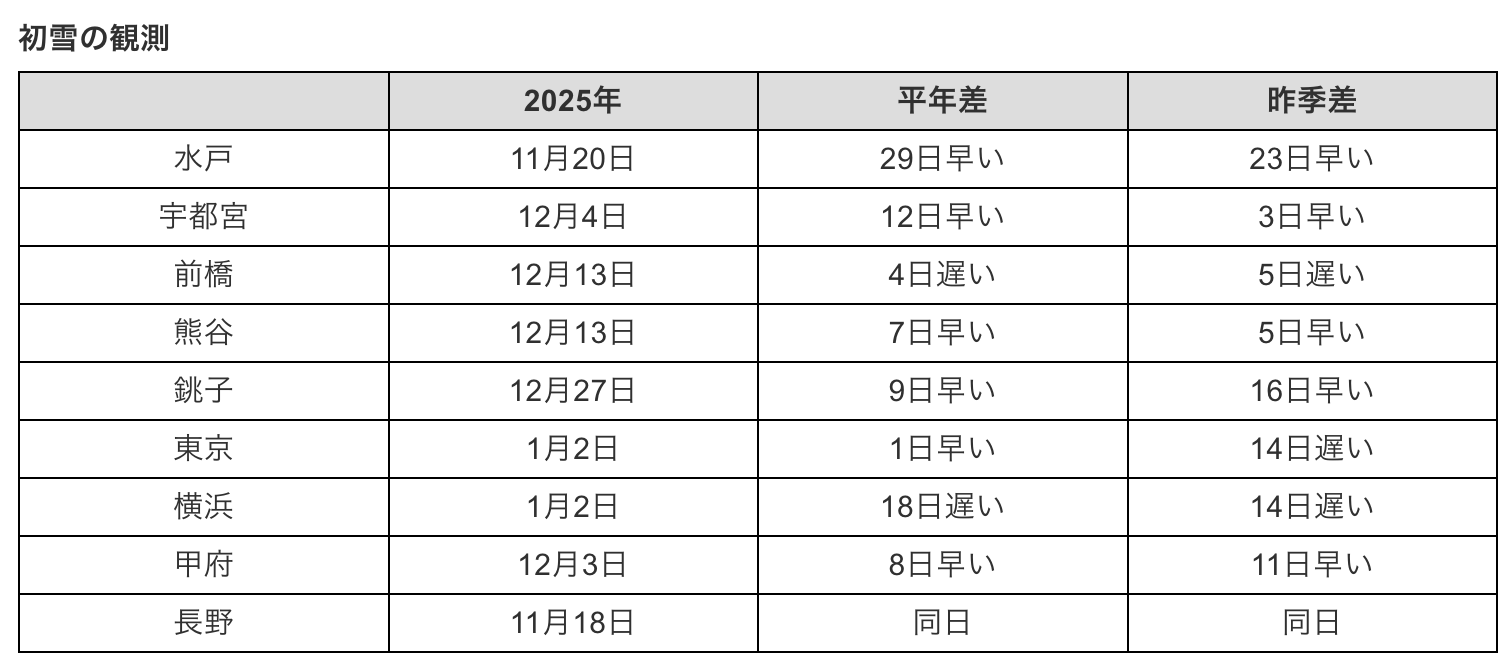 2020年~2021年は日本海側で記録的な大雪がありました。今年2026年は、1月2日に東京では初雪が降りました。東京で初雪はだいたい1月初旬に降るのが平常。